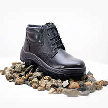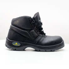 Calzado Alto modelo Warrior de cuero color negro, puntera de acero, planta de Poliuretano, forro textil.