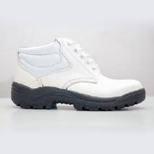 Calzado de Seguridad modelo Golden de cuero color blanco, puntera de acero, sistema de fabricacion Poliuretano Inyectado bi-componente, forro de badana natural.
